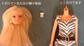 | 後頭部ならともかく、前髪が地肌見える程ごっそり根元から切られているのは如何ともしがたい。 首さえ抜ければ今の髪を全部カットした上で、新しくドールヘアを植毛する事ができるのだが。 しかし「バービー」と名のつくお人形に関しては、数年前に本家アメリカバービーのボディを交換しようとして思いきり首のジョイントをねじ切ってしまった(その時は交換用のボディのジョイントが使えたので事なきを得たが、今も彼女を振ると頭の中でジョイントの残骸がカラカラ音をたてる)暗い過去持ちなので、つい及び腰になる。 |