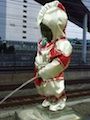 東京駅から山手線に乗って、西日暮里へ。 めでたく上の写真を撮って「しかしこうなると、まだ他にも何かあるんじゃないか」と見回していたところ、スタンプ台の横にもひっそりとダダからの挨拶を発見。 「西日暮里へようこそ!! ダー ダー」 ダダさん本人と通訳さんの立ち位置がちょっと変わった感があります。 通訳さんはきっと駅員さんなのでしょう。ここまでのご案内はこのイベントのいわばホストであるダダさんにお任せしたものの、スタンプ台まで来た客につい駅員さんのウェルカム精神が発露した、そんな光景が想像されます。 |