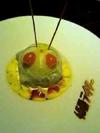 そして夕方から池袋の「仮面ライダー×パセラ コラボレストラン KAMEN DINER」へ。(重ねておつきあいありがとうございました!>私信×4)今回は5人中リピーターが3人だったので「前回頼みきれなかったメニュー」が主な攻略対象となり、また「次回以降の限定メニュー展開(今の限定メニューは7月末で終了し、新たなメニューがお目見えするそうなので)に関する予想」そして「提供されているメニュー(の主にビジュアル面)に関する見解」等が楽しく語られました。 右の写真はそんな中で「桜島1号のモチモチ抹茶大福」をぢんばさんがリタッチされたもの。写真が下手で恐縮ですが、ぐっとライダーらしさが増した一品かと(リタッチ前の写真は撮り忘れたので、公式サイトにてご確認下さい)。 |